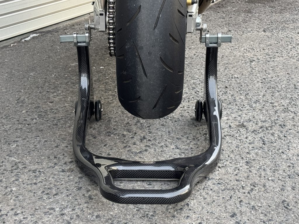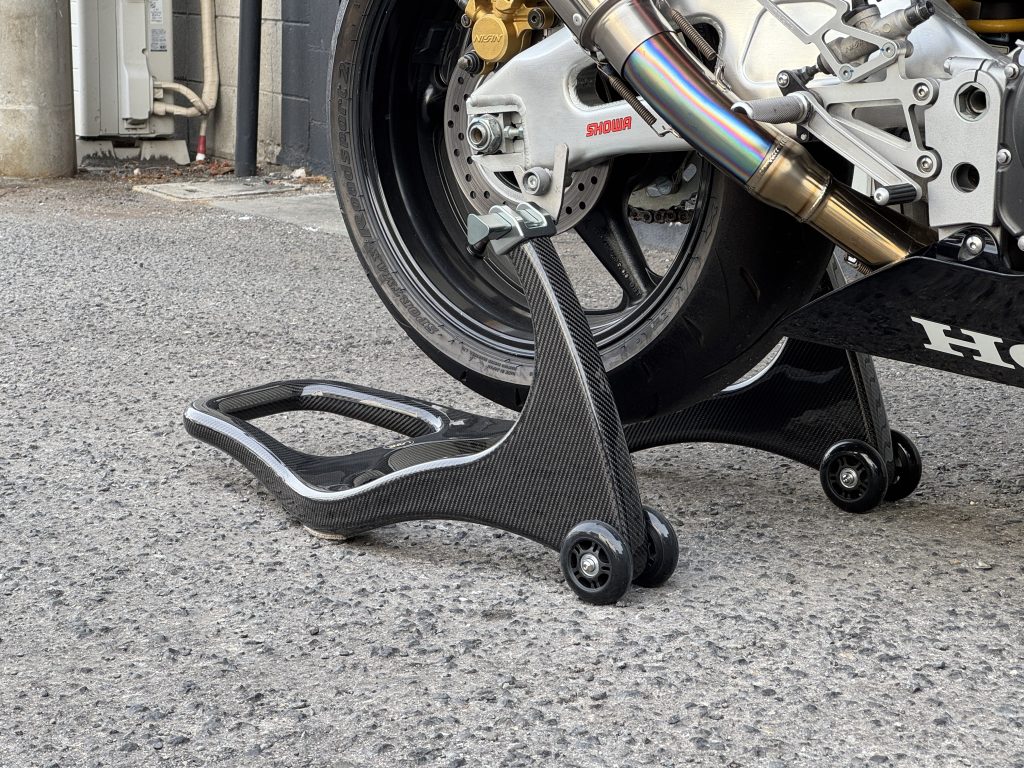 従来の鉄製スタンド同様、多少バイクを揺らしてもしっかりした安定感があります。